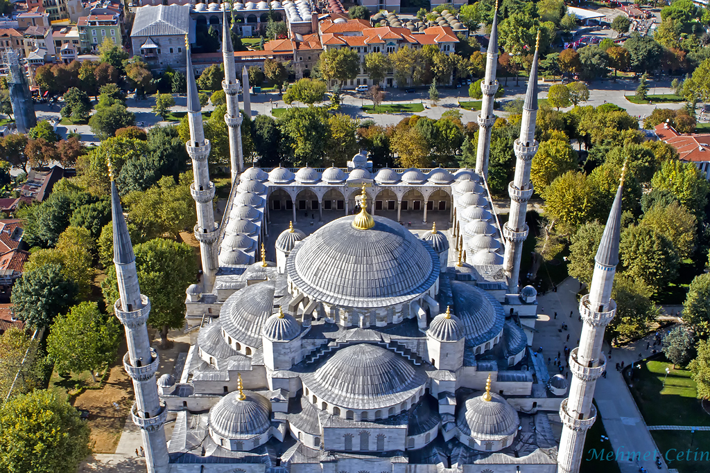 Blue Mosque; known also as Sultan Ahmet Mosque was built in the 17th century by Ottoman Empire Sultan Ahmet the first. It is called the blue mosque because of the exquisite blue tiles decorating its interior. Sultan Ahmet Mosque is the only imperial mosque in the world that was originally built with six minarets.